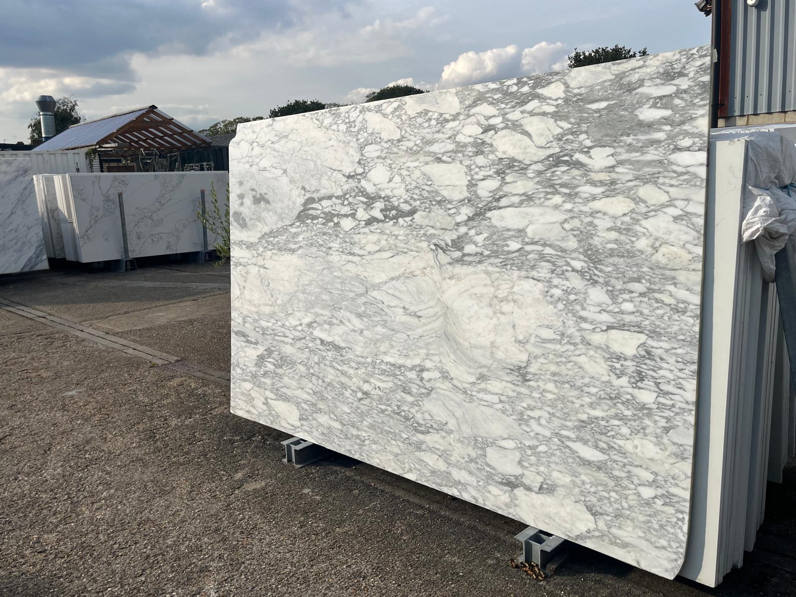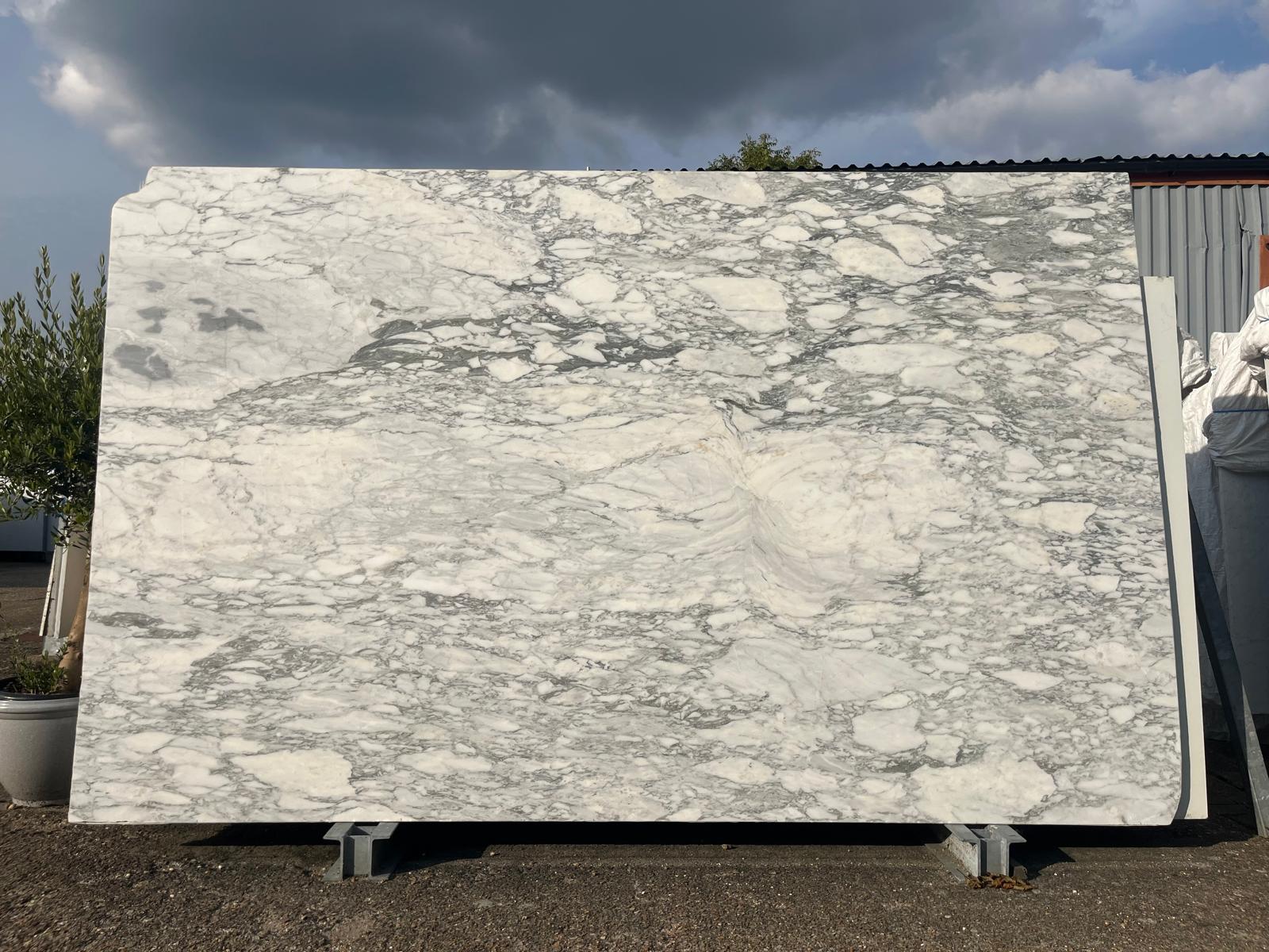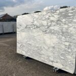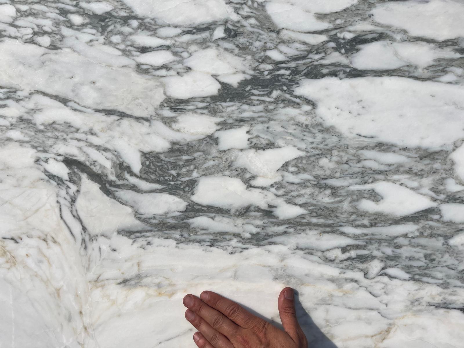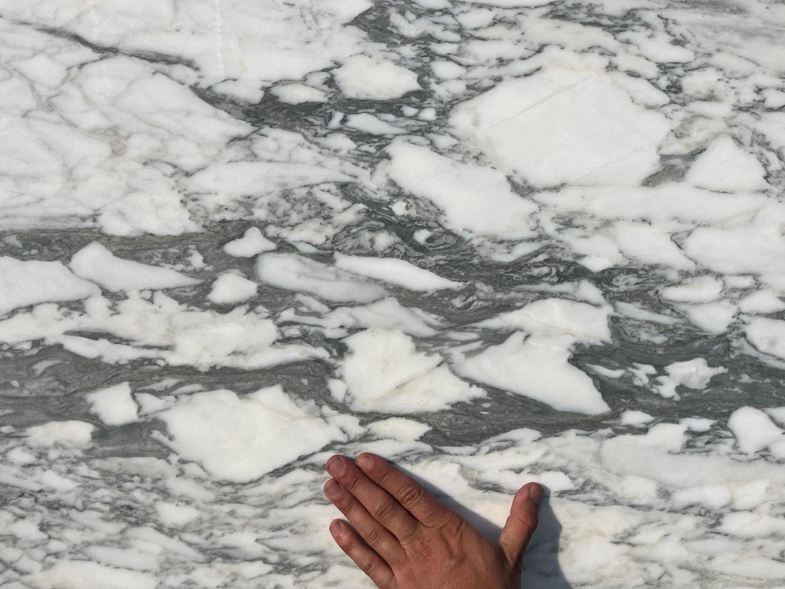 Another classic White Italian Marble from the southern Carrara area in Italy, the quarry is situated to the south of Carrara, its one of the most typical and oldest Arabescato type marbles with elliptical boulder shapes grey or bluish grey veins on a cream to white background. The best blocks carry very little yellow in the eggs, a term used for the white centres in Arabescato. The quarry is situated inside a mountain just above the town of Levigliani. As with the Cervaiole Quarry, a similar less prolific quarry, it is situated high up in the mountains, so production is limited in the winter months. Of all the Arabescato’s, Corchia (pronounced Corkia) is one of the main types of Arabescato available, but comes in a spectrum of qualities, as always when looking for a perfect block, if you find a block which turns our stomach, we buy it there an then, as they do not come along often.