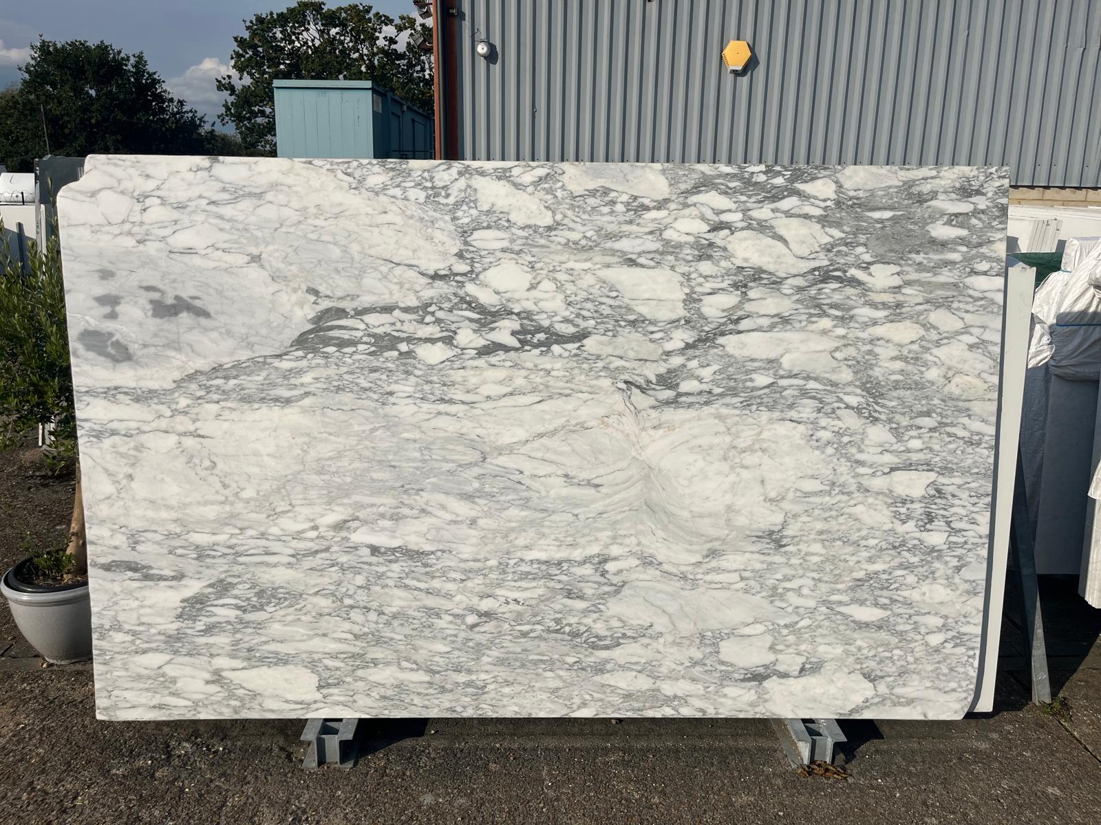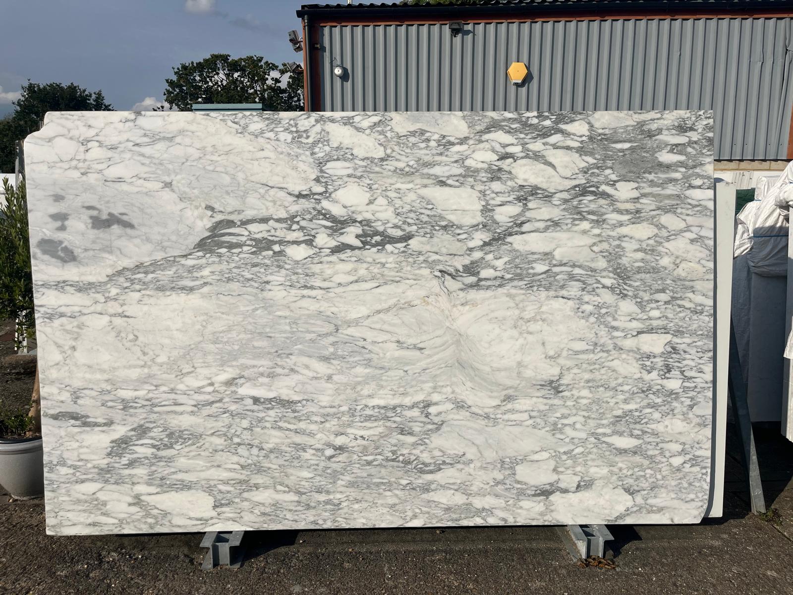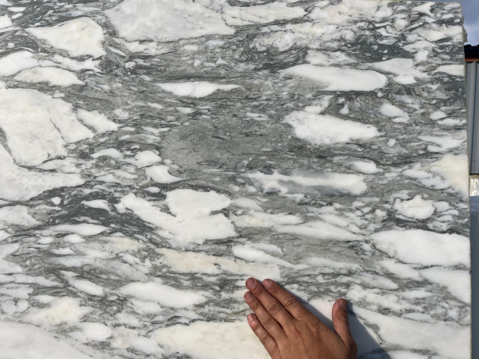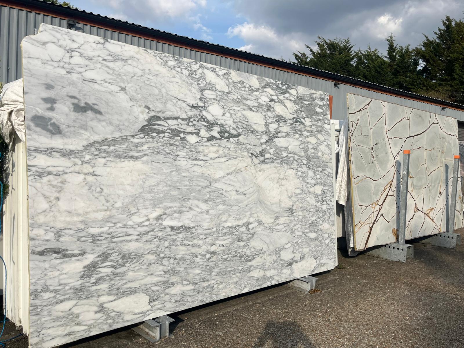 Another classic White Italian Marble from the southern Carrara area in Italy, the quarry is situated to the south of Carrara, its one of the most typical and oldest Arabescato type marbles with elliptical boulder shapes grey or bluish grey veins on a cream to white background. The best blocks carry very little yellow in the eggs, a term used for the white centres in Arabescato. The quarry is situated inside a mountain just above the town of Levigliani. As with the Cervaiole Quarry, a similar less prolific quarry, it is situated high up in the mountains, so production is limited in the winter months. Of all the Arabescato’s, Corchia (pronounced Corkia) is one of the main types of Arabescato available, but comes in a spectrum of qualities, as always when looking for a perfect block, if you find a block which turns our stomach, we buy it there an then, as they do not come along often.