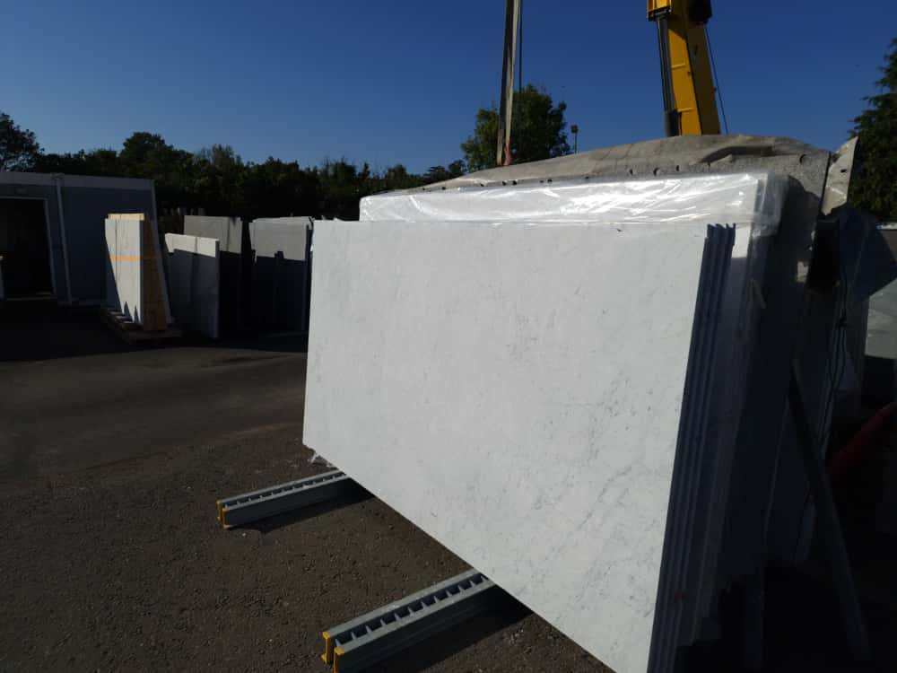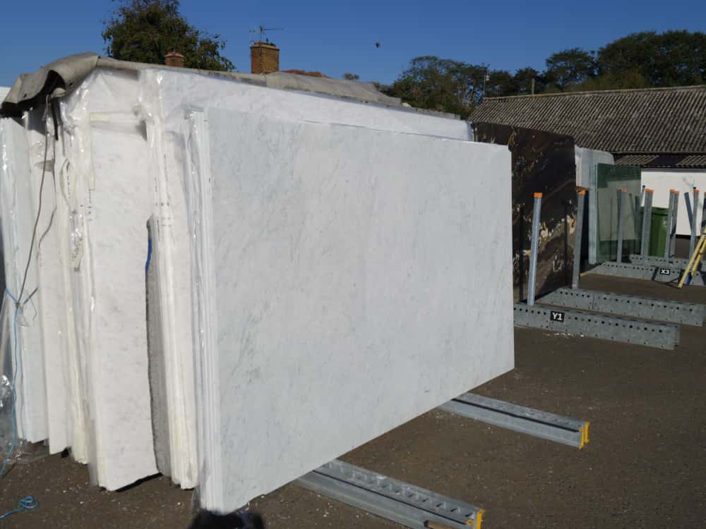 The Classic Italian Marble with greys and subtle blues found all over the world from private homes to restaurants and skyscrapers. One of the most popular and readily available white Marbles. Timeless and elegant. And comes from many quarries, so has many different looks depending on each quarry, and the selection. The whitest cleanest blocks tend to be the most expensive.
