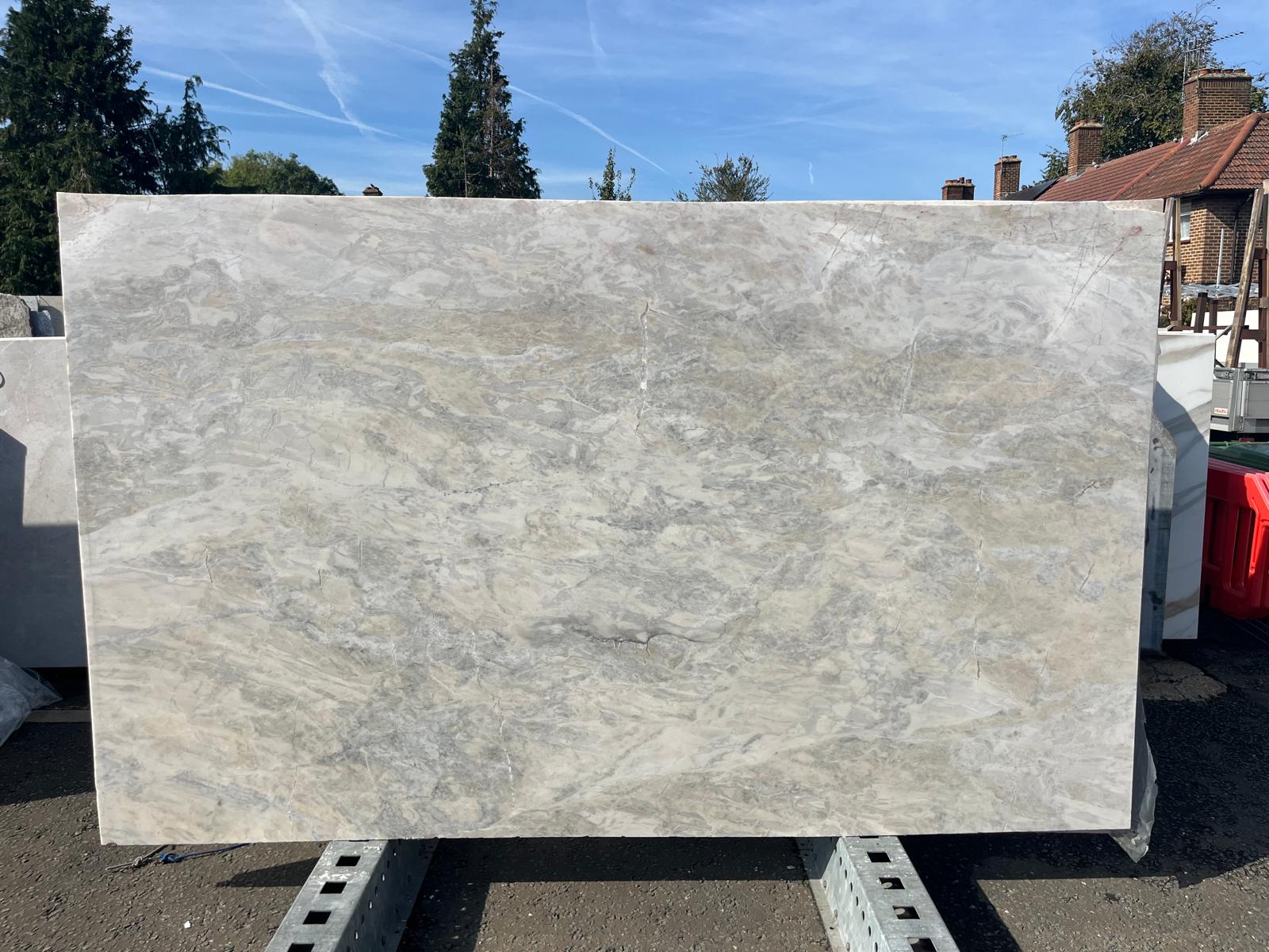 Dolce Vita quartzite from Italy is a stunning white and ivory stone with subtle tones of gray and peach. These polished slabs are recommended for interior uses in both residential and commercial properties including floors, countertops, backsplashes and other wall applications.