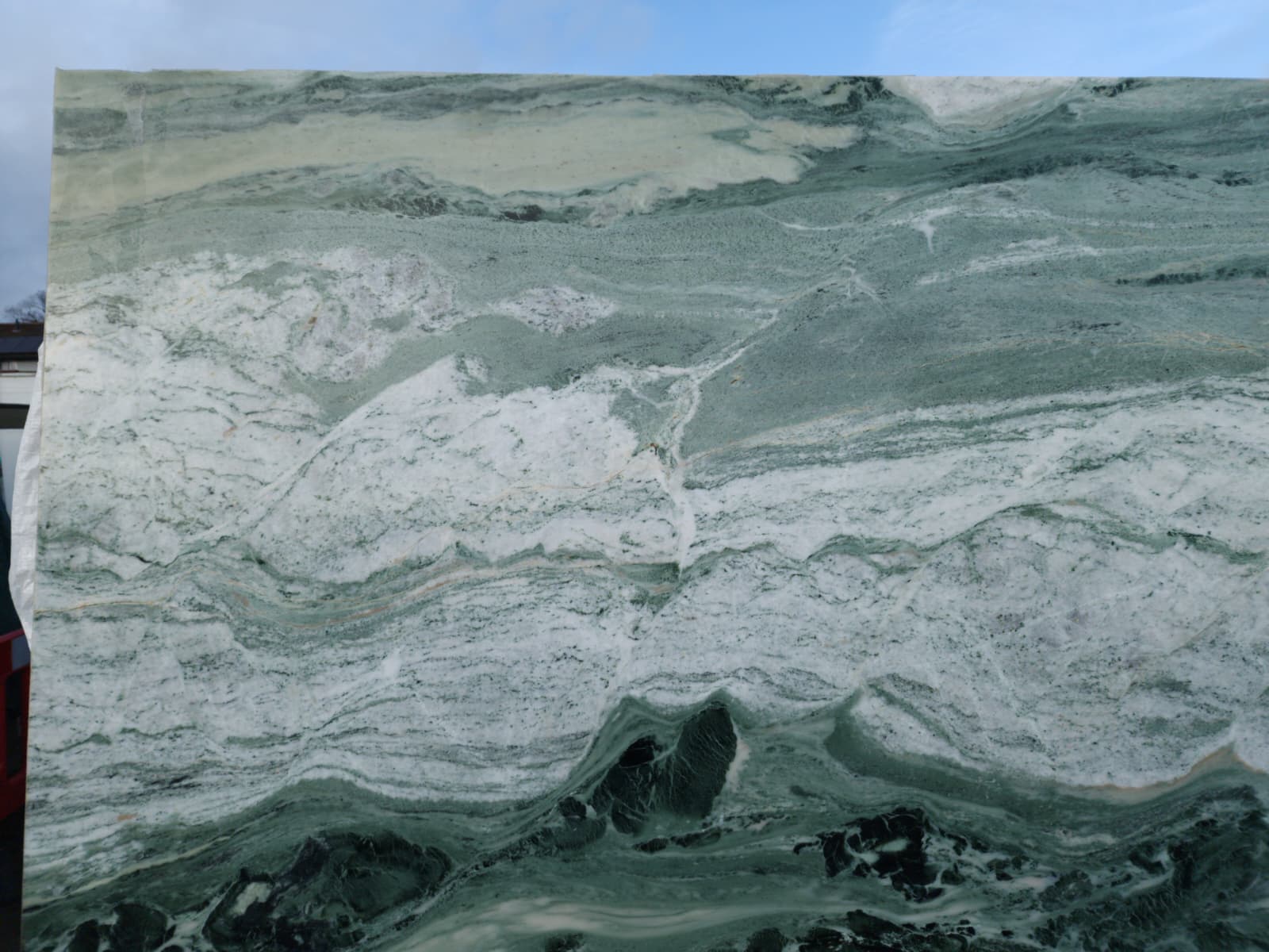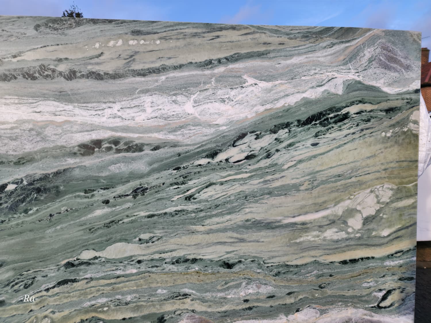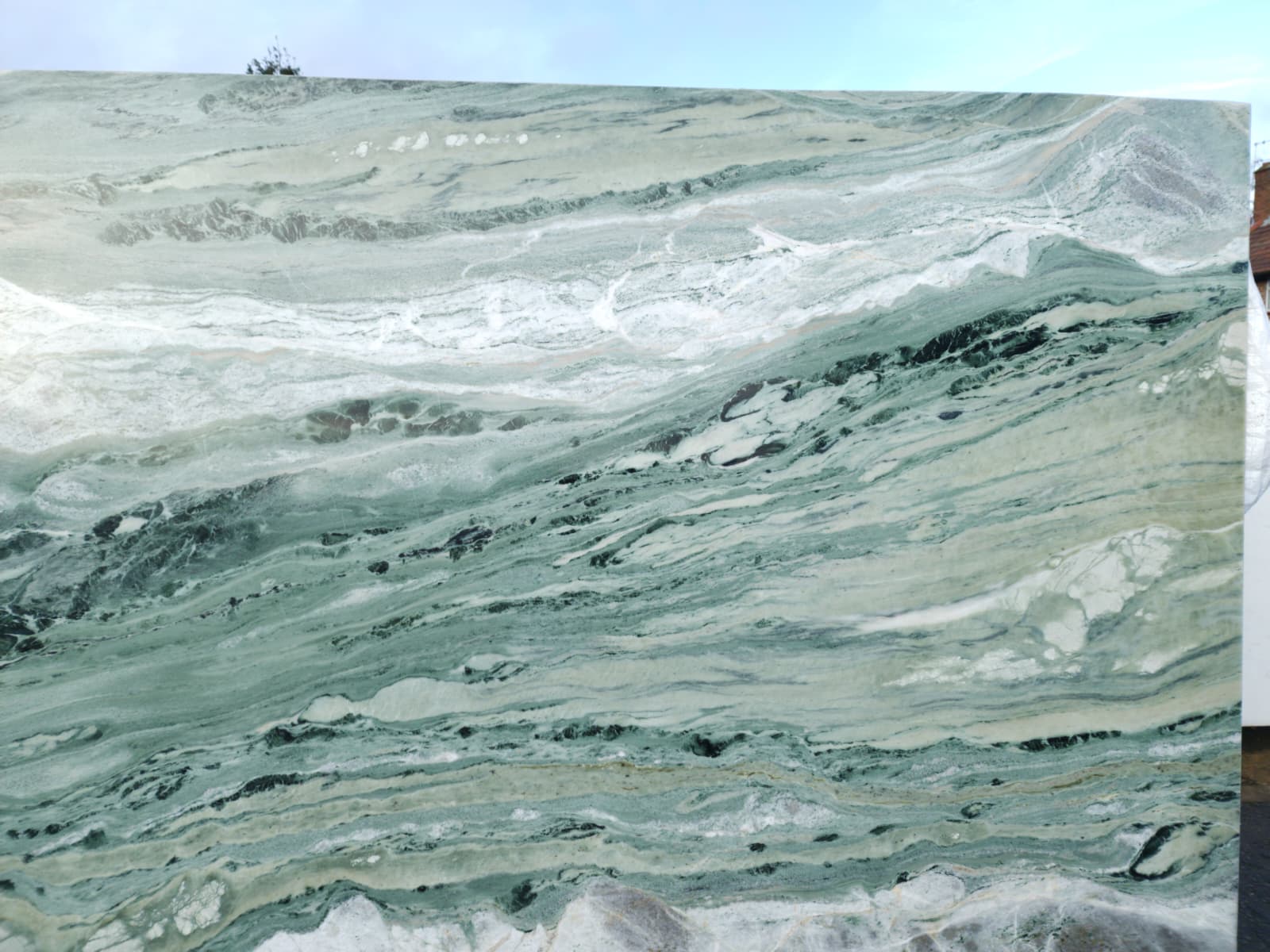 Quarried in China — known for expressive, high‑character green marbles