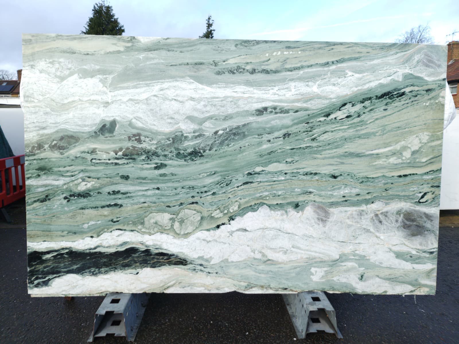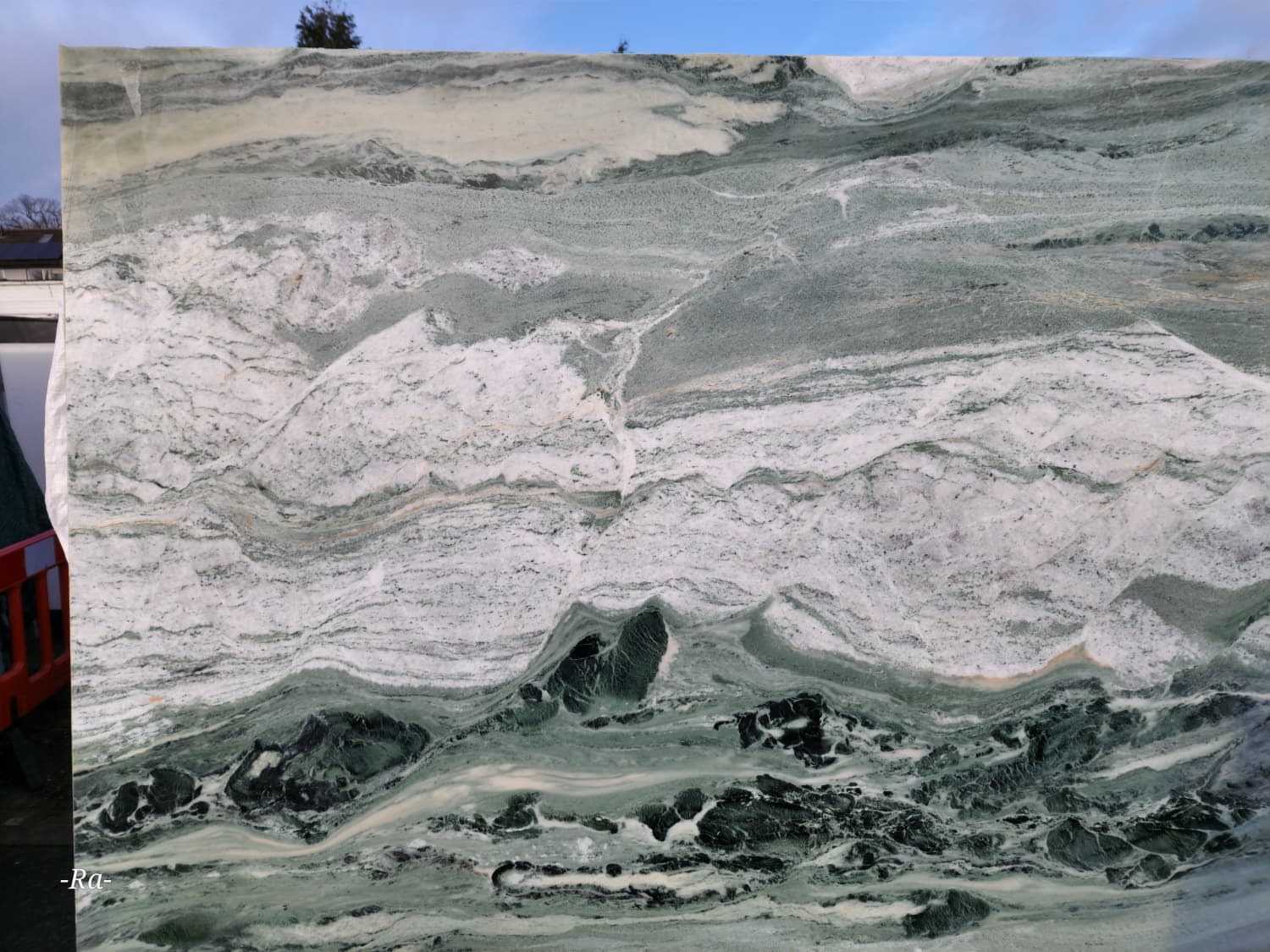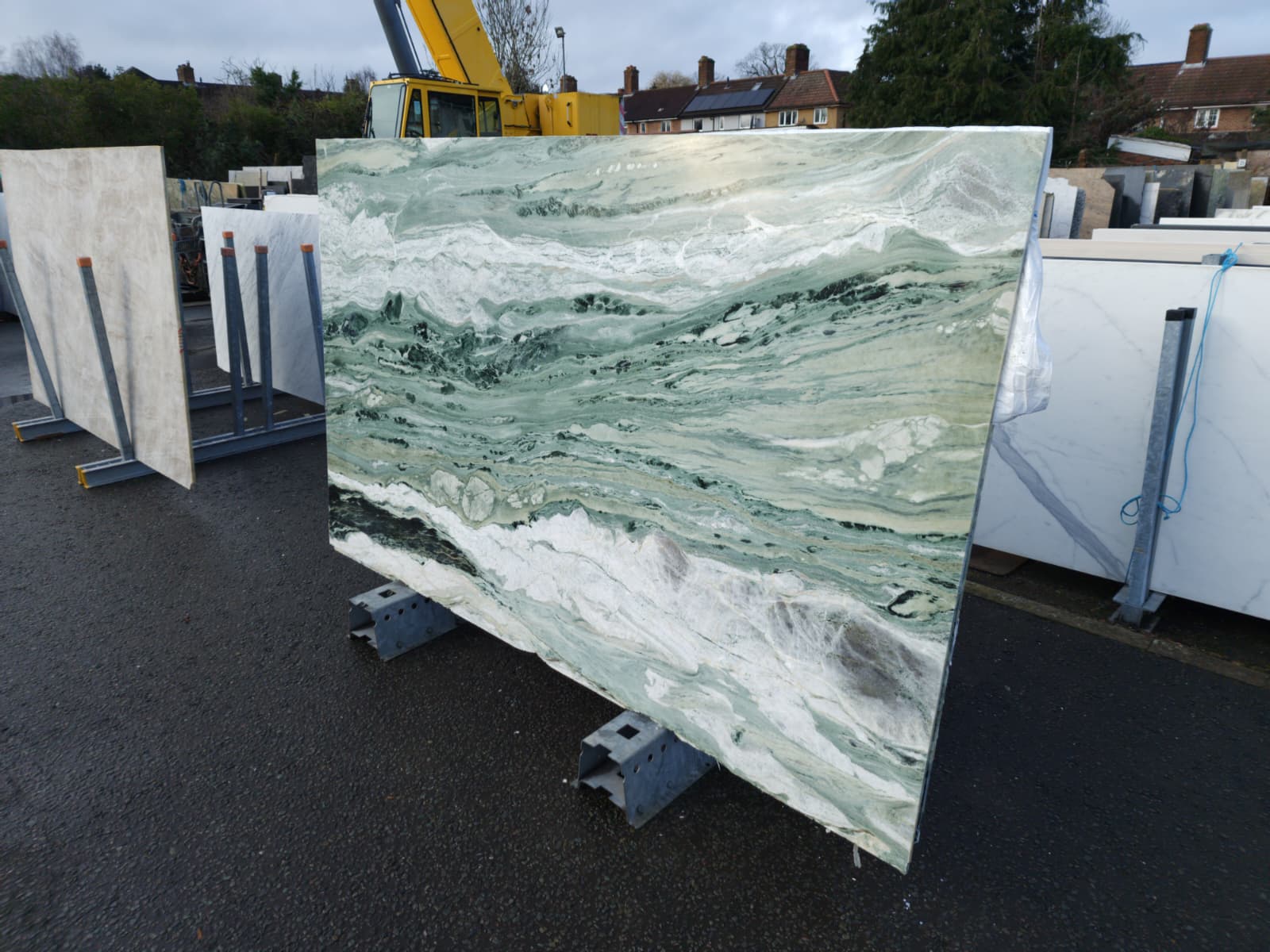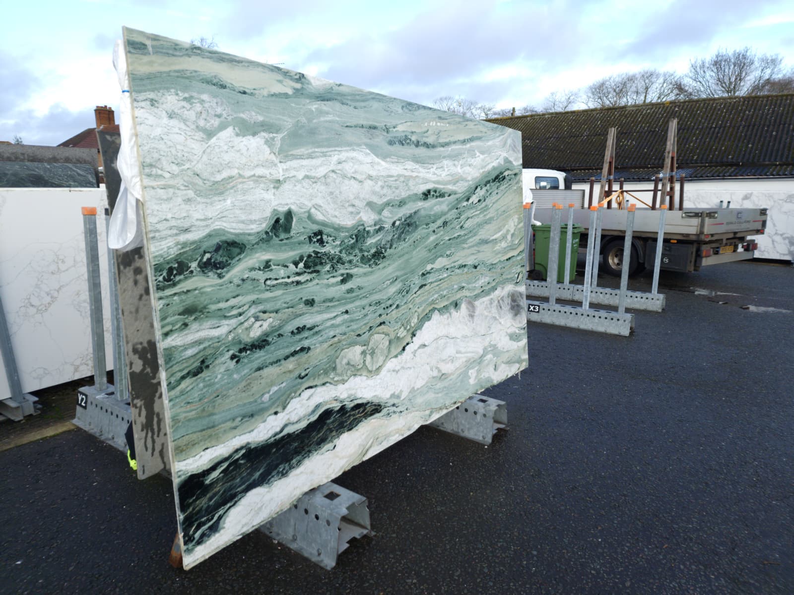 Quarried in China — known for expressive, high‑character green marbles
