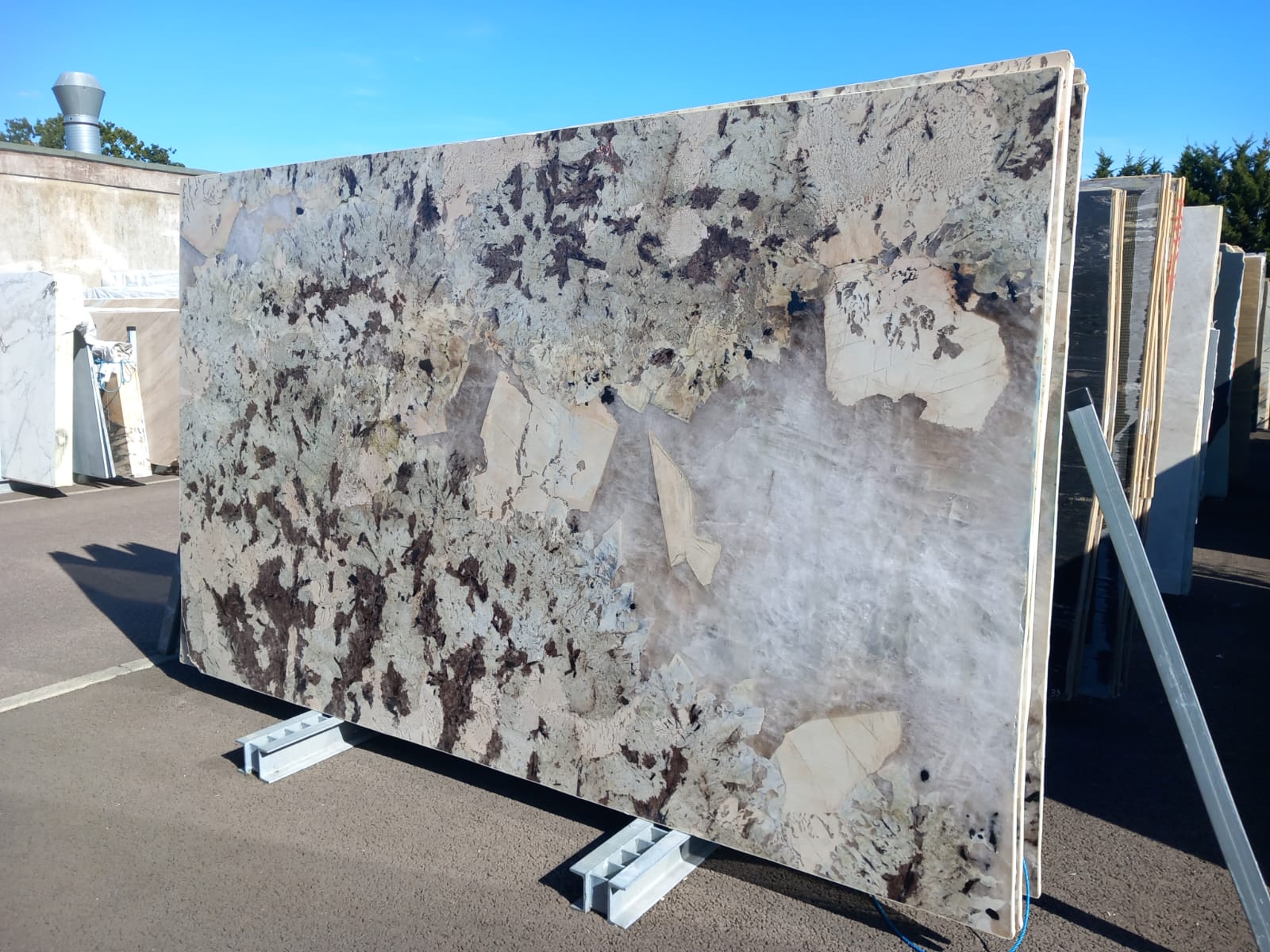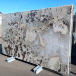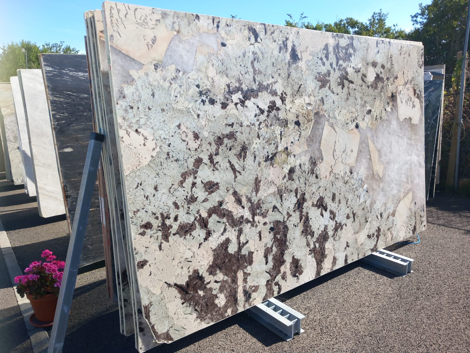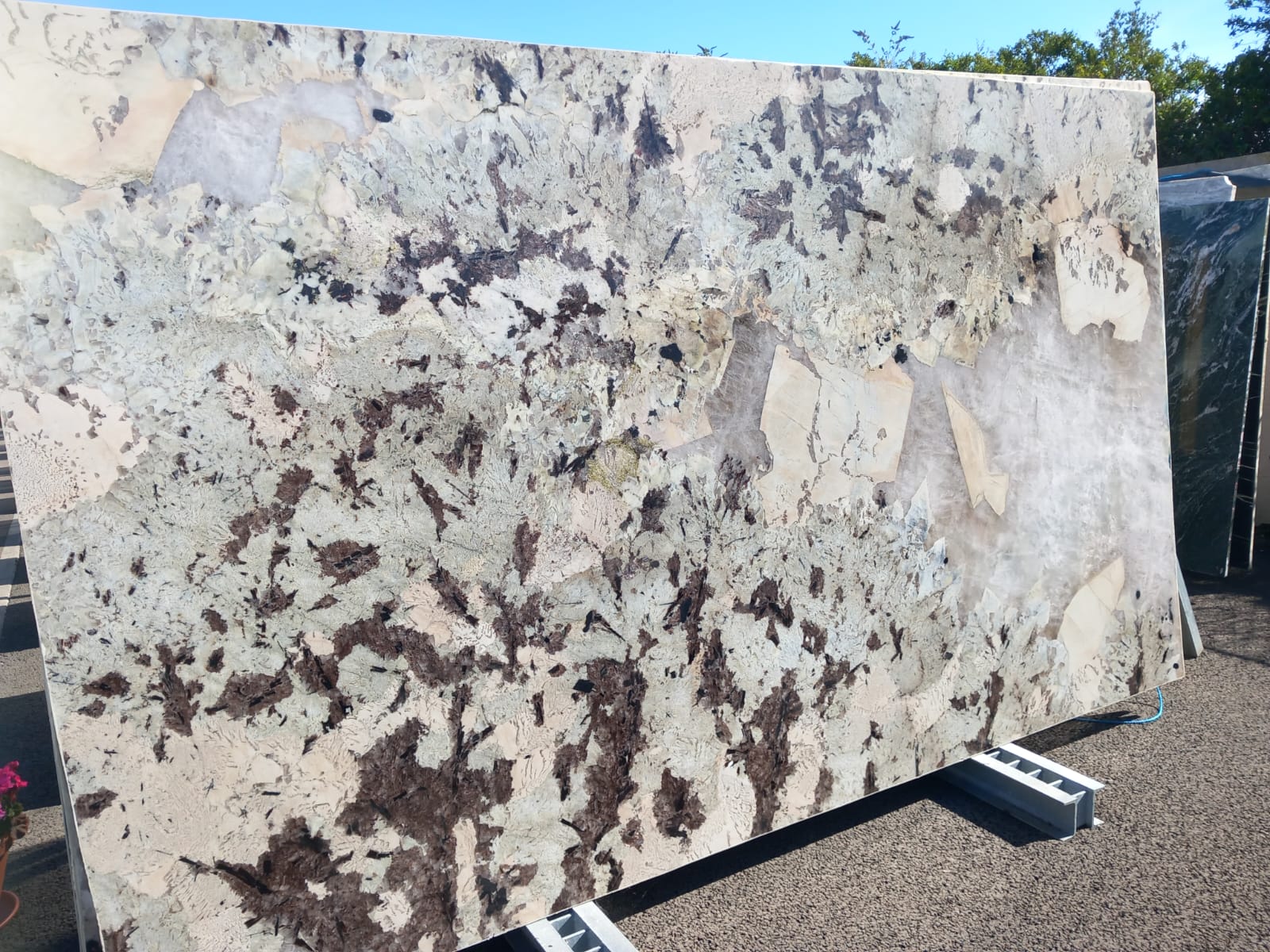 Interesting Granite suitable for kitchen worktops with contrasting blacks creams and whites that fleck the surface.