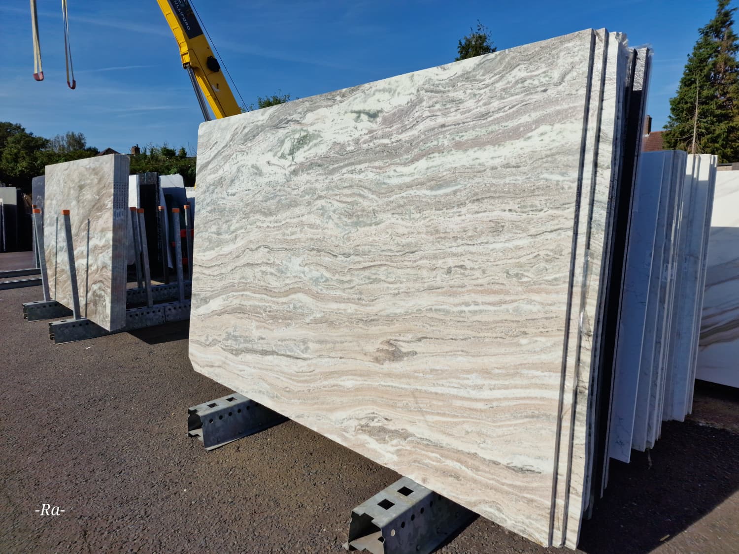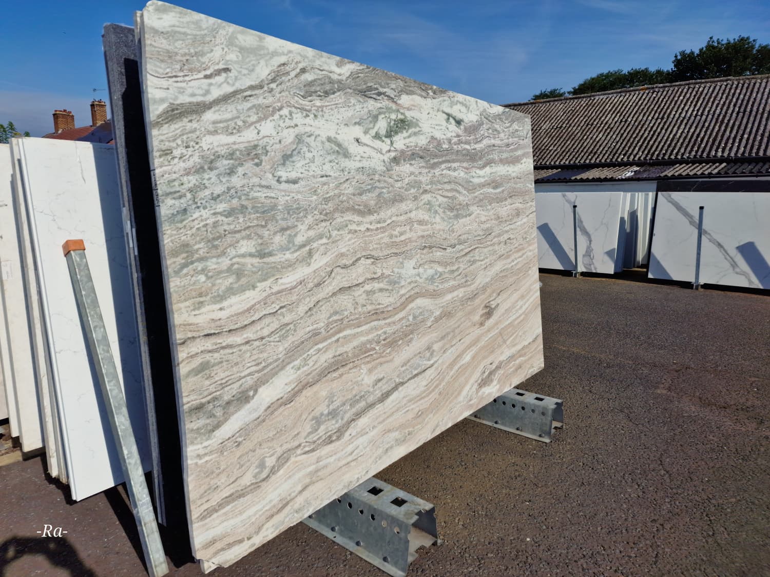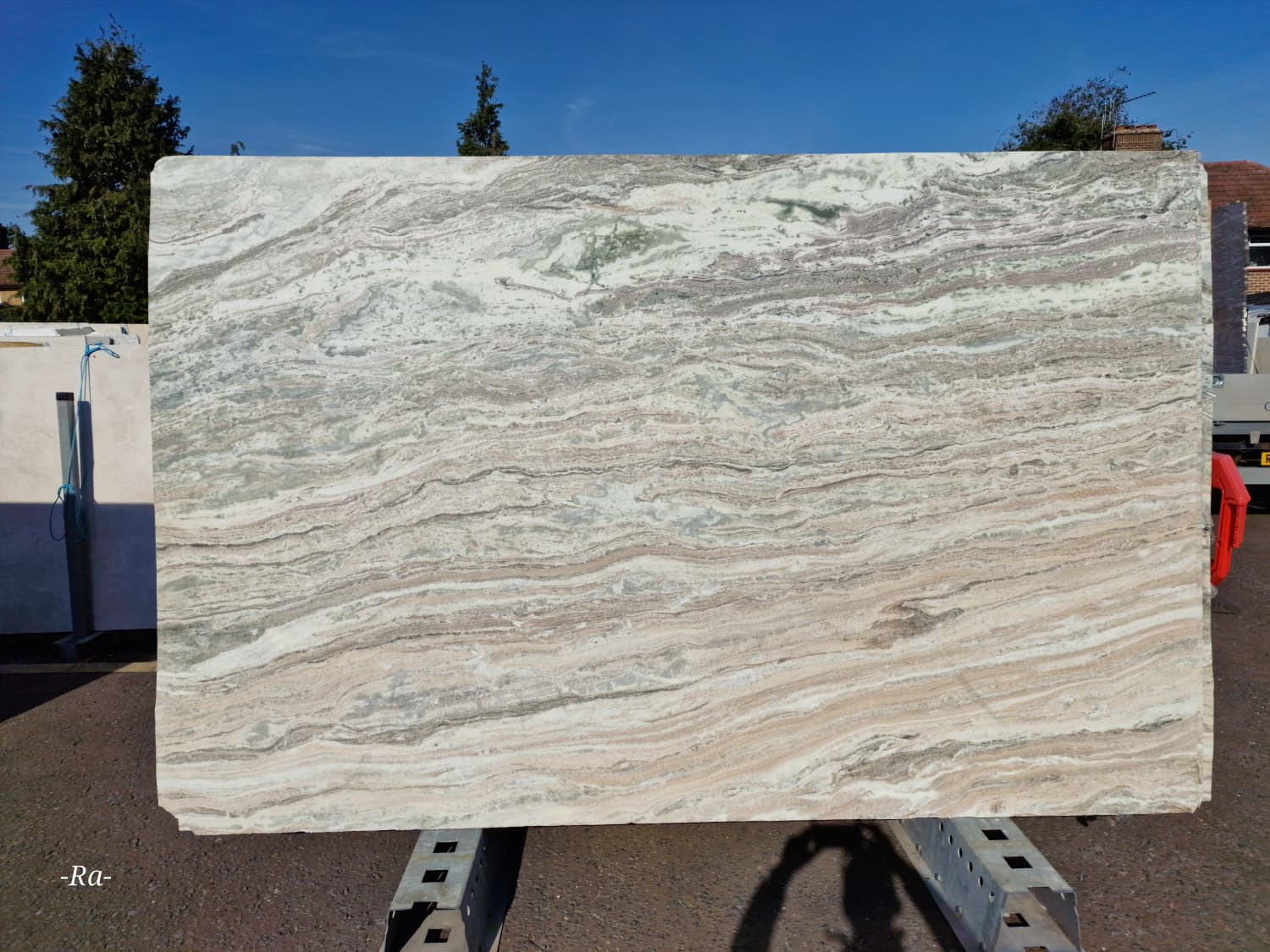 One of our most popular natural materials for kitchen worktops with sweeps of brown and cream with an occasional green.